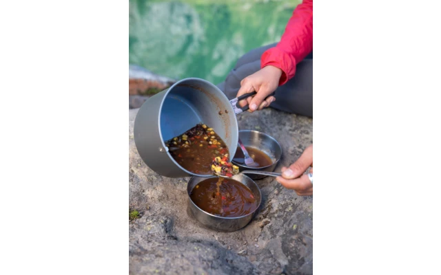 Ein Löffel auf der einen Seite und auf der anderen ein Düsen- und Kabelwerkzeug zur Wartung des MSR Flüssigbrennstoffkochers. Aus robustem, extrem strapazierfähigem Edelstahl.