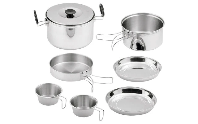 Gut ausgestattetes Edelstahlkochset.