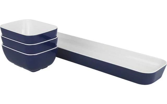 Dieses formschöne Set bestehend aus einem Tablett und 3 Snackschalen, macht jeden Snack zum Highlight! Das Set besteht aus hochwertigem Melamin und ist dadurch sehr langlebig und robust. Außerdem ist es schmutzabweisend und leicht zu reinigen. Sie können das Set einfach in der Spülmaschine reinigen.