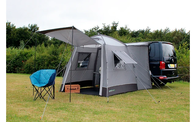 Wir haben kristallklare Fensterelemente und Netzbelüftungspunkte auf beiden Seiten des Vorzelts eingeführt, um den Innenraum luftig zu halten, und eine separate abnehmbare Bodenplane, die auf Wunsch entfernt werden kann. Außen liegende Sturmabdeckungen mit Reißverschluss sorgen für maximalen Schutz gegen die Elemente bei widrigen Wetterbedingungen, während die Belüftungsöffnungen im Dach die Luftzirkulation aufrechterhalten, um Kondensation zu vermeiden. Ein stilvolles Vordach kann mit optionalen Vordachstangen (separat erhältlich) geschaffen werden, und der Innenbereich kann abends mit unserem optionalen Lumi-Link-Beleuchtungssystem beleuchtet werden, das einfach per Klettverschluss befestigt wird.