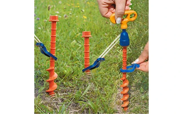 Der glasfaserverstärkte Schraubhering für sandige Böden z. B. an der Küste. Für Vorzelte, Leinen und Zelte, etc. mit Haken