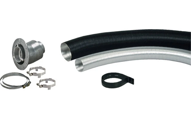 Komplett mit Kamininnenteil, 1,1 m Abgasrohr, 1 m Zuführungsrohr und Schellen (ohne Kaminaußenteil).